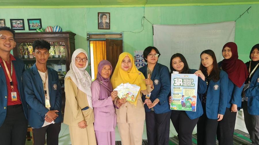 Dalam pelaksanaannya, mahasiswa menjelaskan bahwa limbah plastik merupakan salah satu penyumbang utama pencemaran lingkungan yang sulit terurai secara alami.